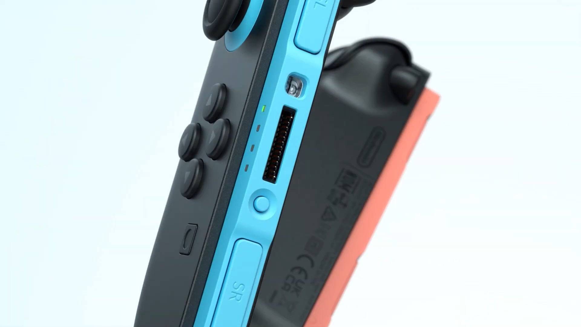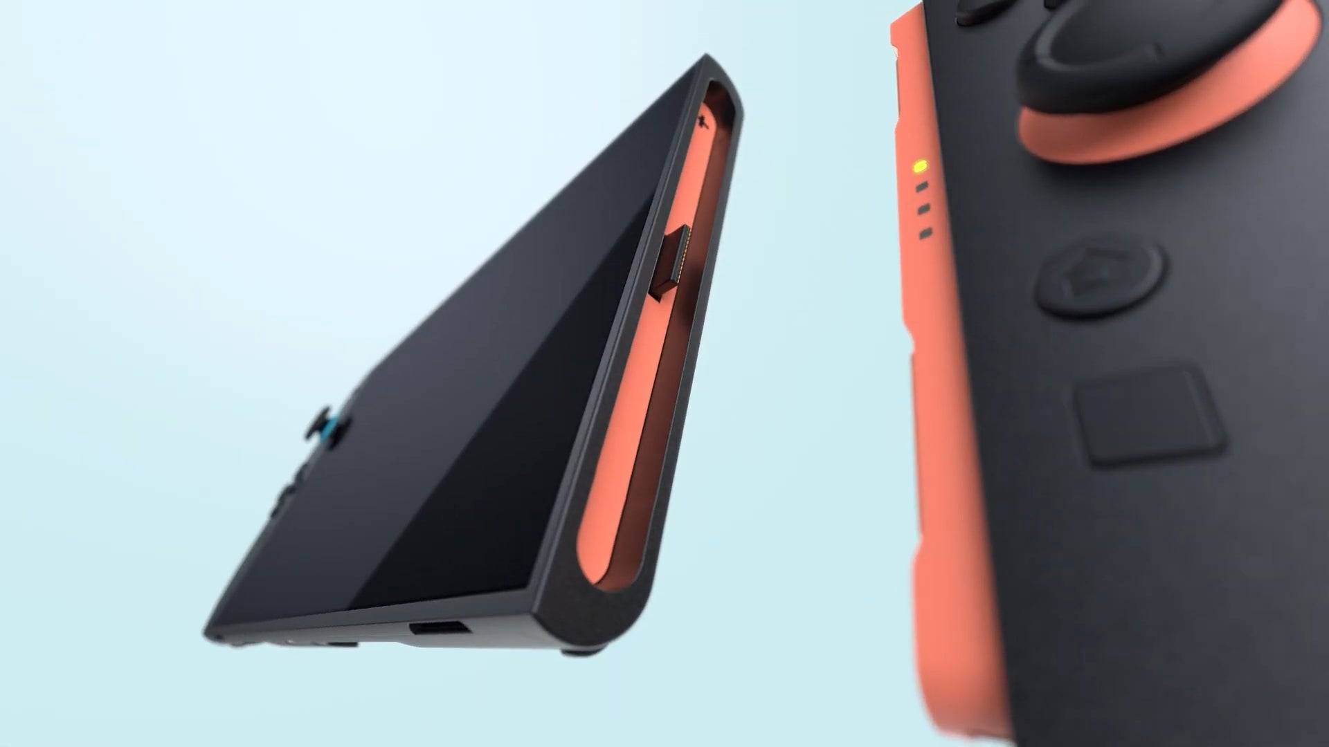 04 - Der Joy -Con -Bindungsmechanismus hat sich geändert. Anstatt Schienen zu schieben, stecken sie jetzt direkt in die Konsole, wobei ein Stecker auf der Haupteinheit in einen Port am inneren Rand der Joy-Con steckt. Gerüchte deuten auf eine magnetische Bindung hin, ähnlich wie die Magsafe von Apple.