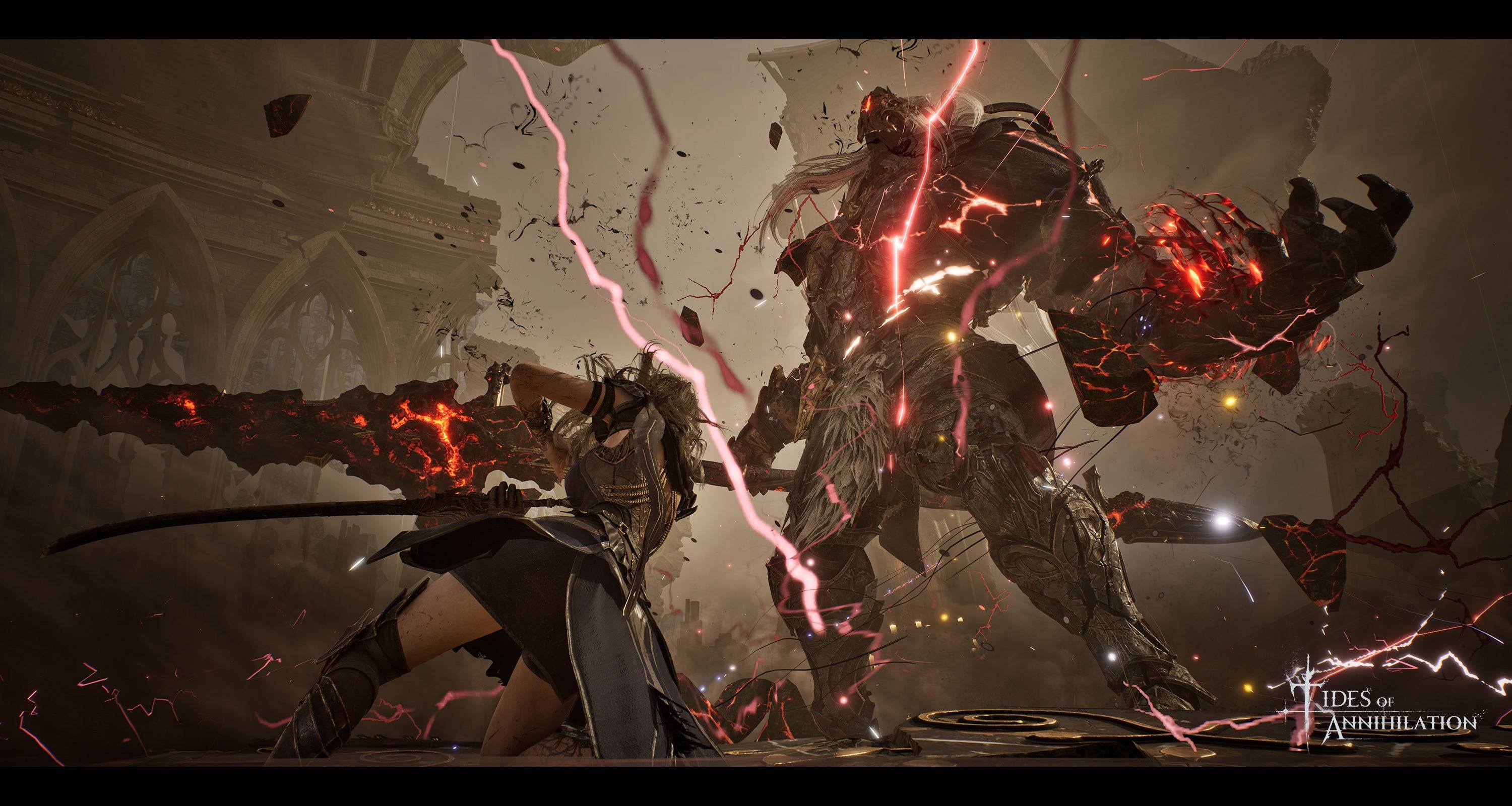 Tides of Annihilation is a single-player, narrative-driven adventure set in a twisted, otherworldly-invaded version of modern London. As Gwendolyn, humanity’s last hope, embark on a legendary quest through iconic London locations to unravel a mystery that will determine the fate of reality. Battle alongside summonable spectral knights, face hordes of enemies, unforgettable bosses, and navigate vertical levels featuring gigantic roaming knights.
